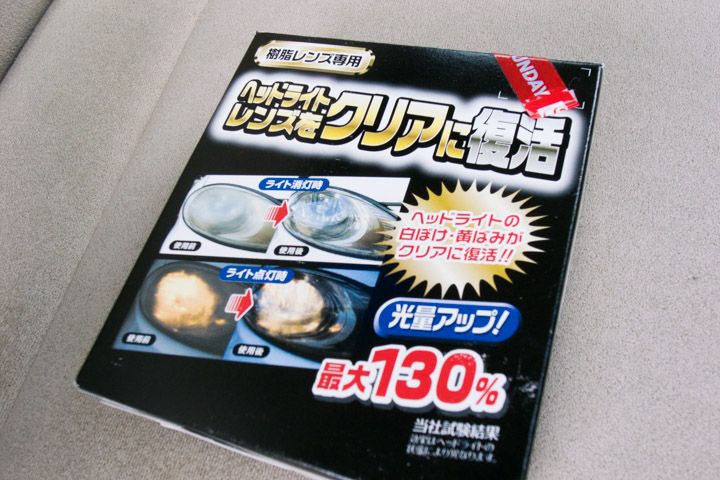 2014-10-04 「ヘッドライトレンズをクリアに復活」を試してみた 未分類 天気が良かったのでブルーバードシルフィを洗車しました。ついでにサンデーで購入した「ヘッドライトレンズをクリアに復活」で、ヘッドライトを磨いてみました。さて結果は、、、まずは磨く前の写真。もやってますね。そしてこれが磨いた後の写真。磨く前よりクリアになっています。確かに効果はあったようで満足しています。液体を専用クロスにたらしてヘッドライトを拭くだけ、と使い方もすごく簡単でした。