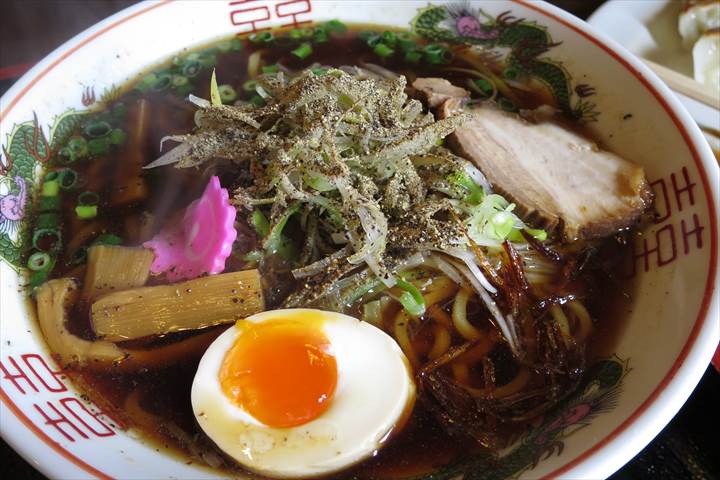 2015-04-15 富山ブラック【味噌家がんこ亭】 外食 がんこ亭で4月限定ラーメンということで「富山ブラック」が提供されていました。名前を聞いたことはありましたが、実際に食べたことはなかったので、ちょうどいい機会だと思い注文してみました。醤油ベースのラーメンに、すごくコショウがきいていて塩辛かったです。ランチセットにして一緒にご飯と食べるのがベストだと思います。