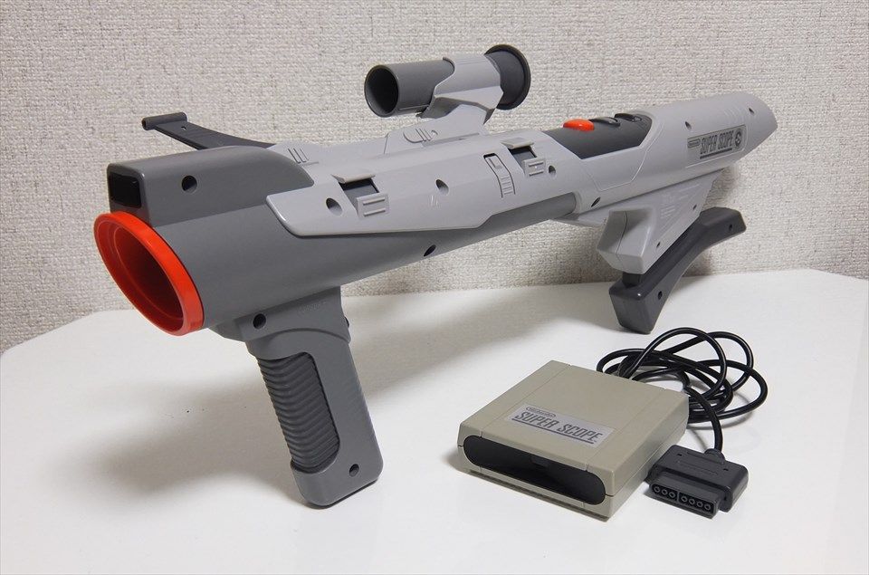 スーパースコープは、近未来フォルムをした光線銃です。従来のコントローラとは違い、離れた場所から素早く画面を撃つことができ、コードレスにより操作時のわずらわしさもなく自由に遊べます。